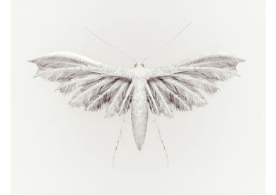 Through these photographs, viewers encounter an emerging collection of species. These include a diamond-studded peacock with a silver exoskeleton, a dragonfly with a glass abdomen and a luminescent air-quality sensor, and a beetle with a metallic antenna that integrates GPS technology.